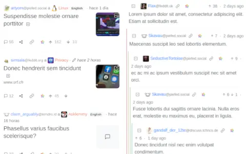 Posts can be upvoted or downvoted. The most interesting ones rise to the top. You can choose between different sort options. Threaded let you follow discussions easily. All the important features from Reddit are available.